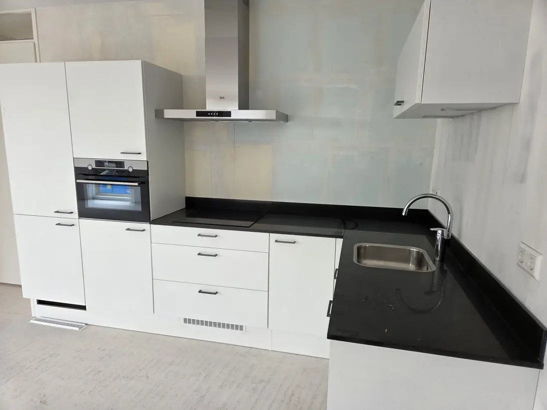 Dit 3-kamer appartement beschikt over een lichte woonkamer met open keuken, een moderne badkamer met inloopdouche en een separaat toilet. De keuken is volledig ingericht met inbouwapparatuur van AEG of gelijkwaardig: een inductiekookplaat, combimagnetron, vaatwasser en een koel-vriescombinatie.