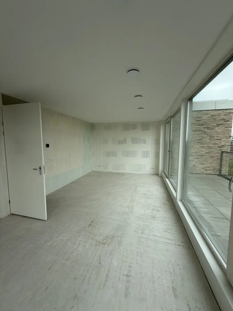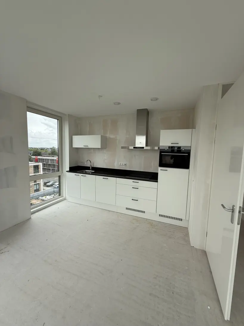 Dit 2-kamer appartement beschikt over een lichte woonkamer met open keuken, een moderne badkamer met inloopdouche en een separaat toilet. De keuken is volledig ingericht met inbouwapparatuur van AEG of gelijkwaardig: een inductiekookplaat, combimagnetron, vaatwasser en een koelkast met vriesvak.
